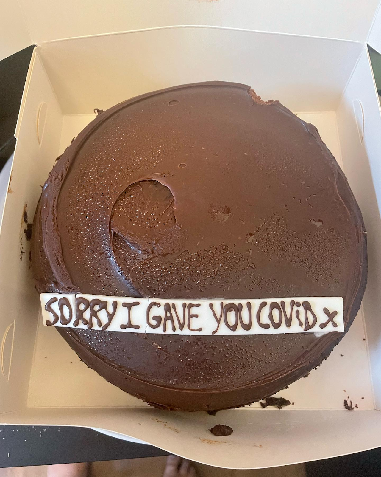 Two days later he posted on Facebook about testing positive for COVID, but didn’t mention it to me until I brought it up. I tested too and yup, though the second line was pale and slow to emerge, it was present. Fuckety fuck fuck fuck. I was terrified that the second time would be worse than the first. He suggested that we isolate together but I didn’t want anyone to see me in the whining whinging ball of snot that I become whenever I’m sick. We talked three times a day or more. Very quickly I got used to facetiming him so we could see what each other were eating for dinner. We talked about FEELINGS. He sent me a cake.